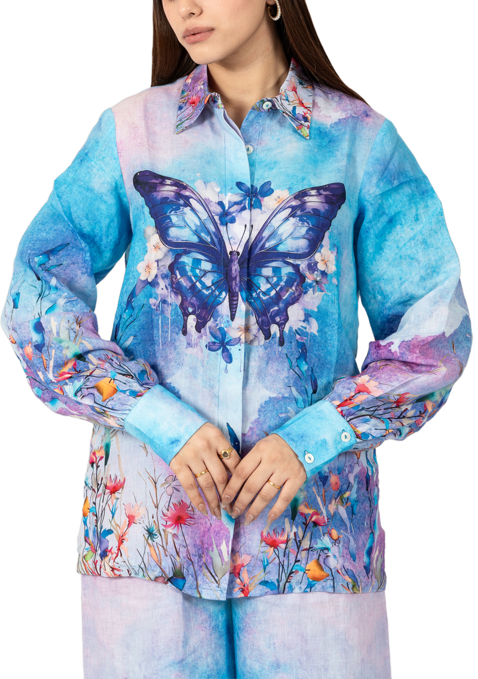 Crafted from pure, premium European linen, the Flutter Bloom Pant mirrors the dreamy hues of blue and purple from its matching shirt. The relaxed silhouette and soft woven texture offer effortless comfort. Add a touch of subtle luxury.